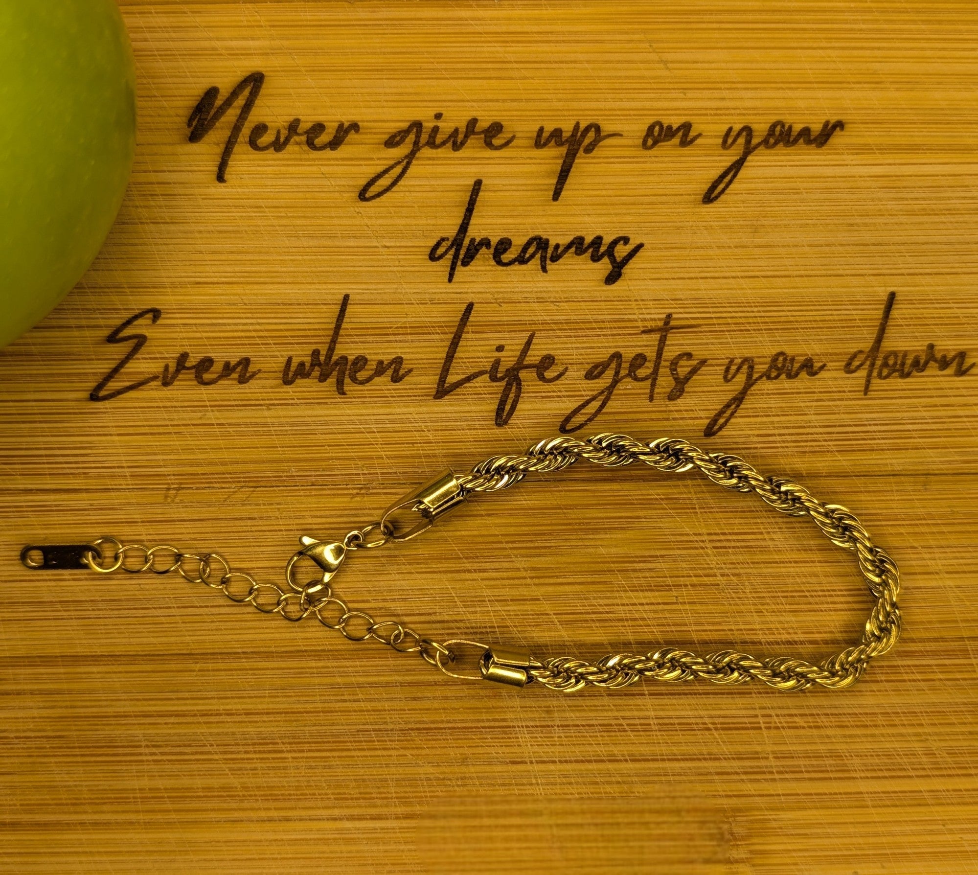 Tie your look together with the Rope Bracelet, a textured, gold-plated staple with subtle shimmer and street-style edge. Inspired by classic rope chains, it’s made to live through shower sets, pool parties, festival mosh-pits or the daily grind and still look effortlessly cool.