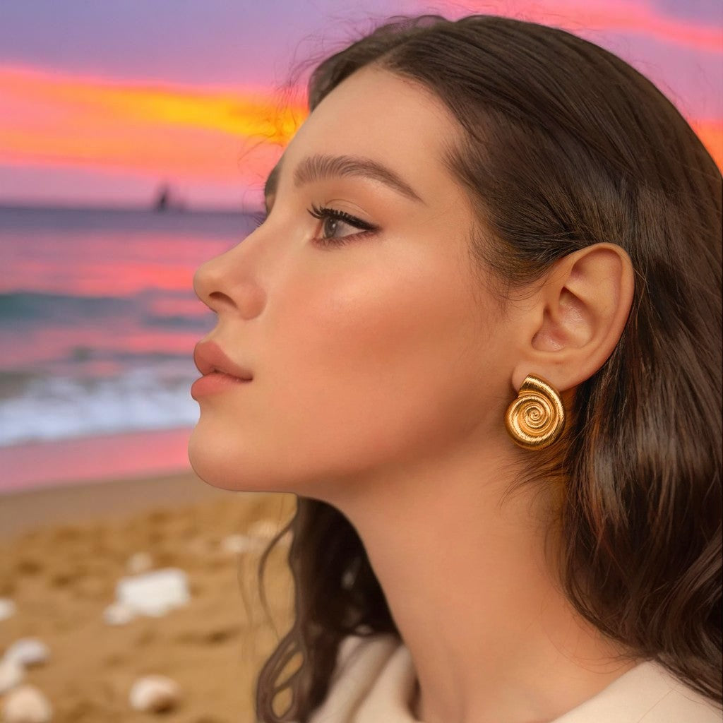 With their smooth, shell-inspired shape and waterproof, tarnish-free finish, the Ibiza Conch Earrings are designed to be slipped on morning to midnight, whether you're commuting, coffee-cruising, or dancing under the sun.