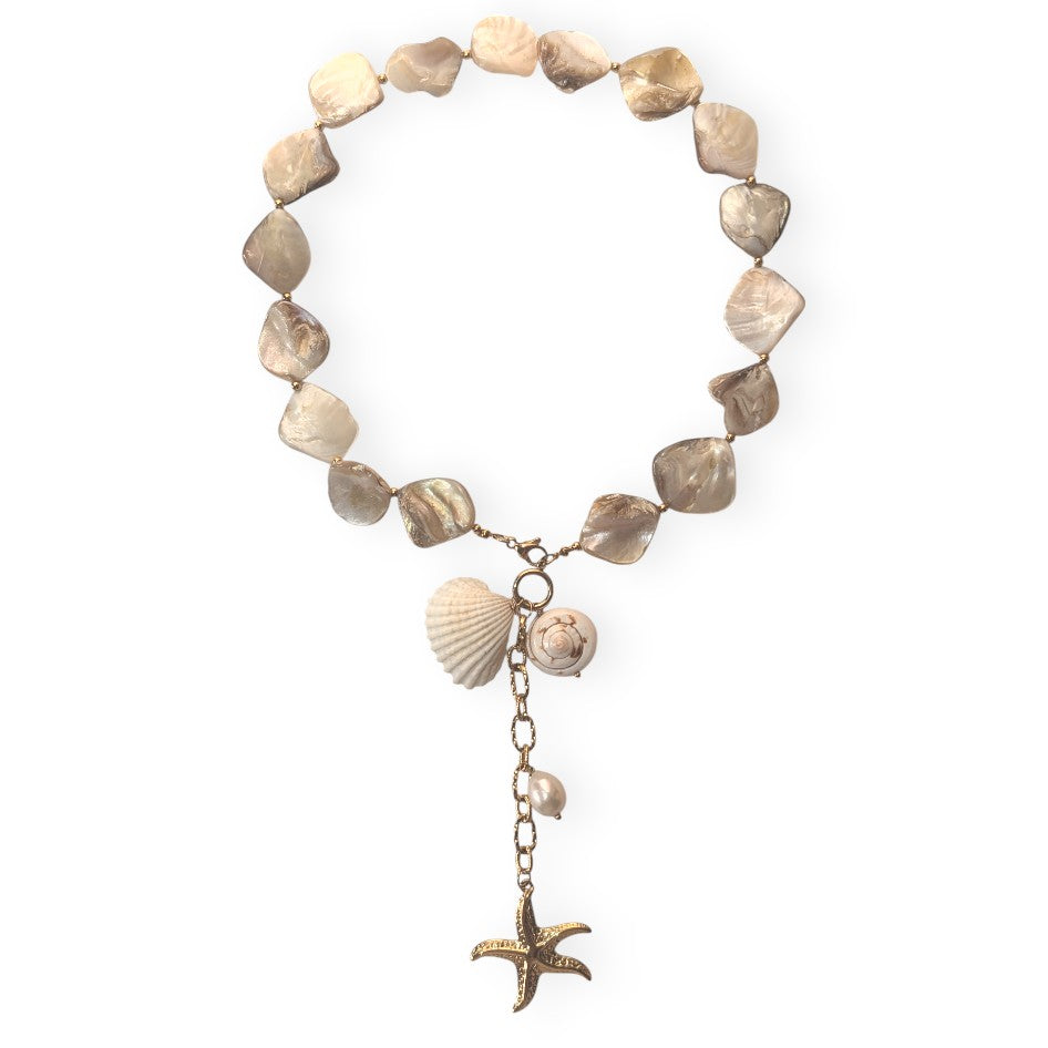 The Bali Shell Necklace features a delicate gold-plated starfish and natural seashells on a waterproof, tarnish‑resistant stainless steel chain. Designed for everyday resilience and effortless elegance, this 17.5″ necklace with a 4″ drop layer stays luminous through meetings, showers, and sundown dancefloors.