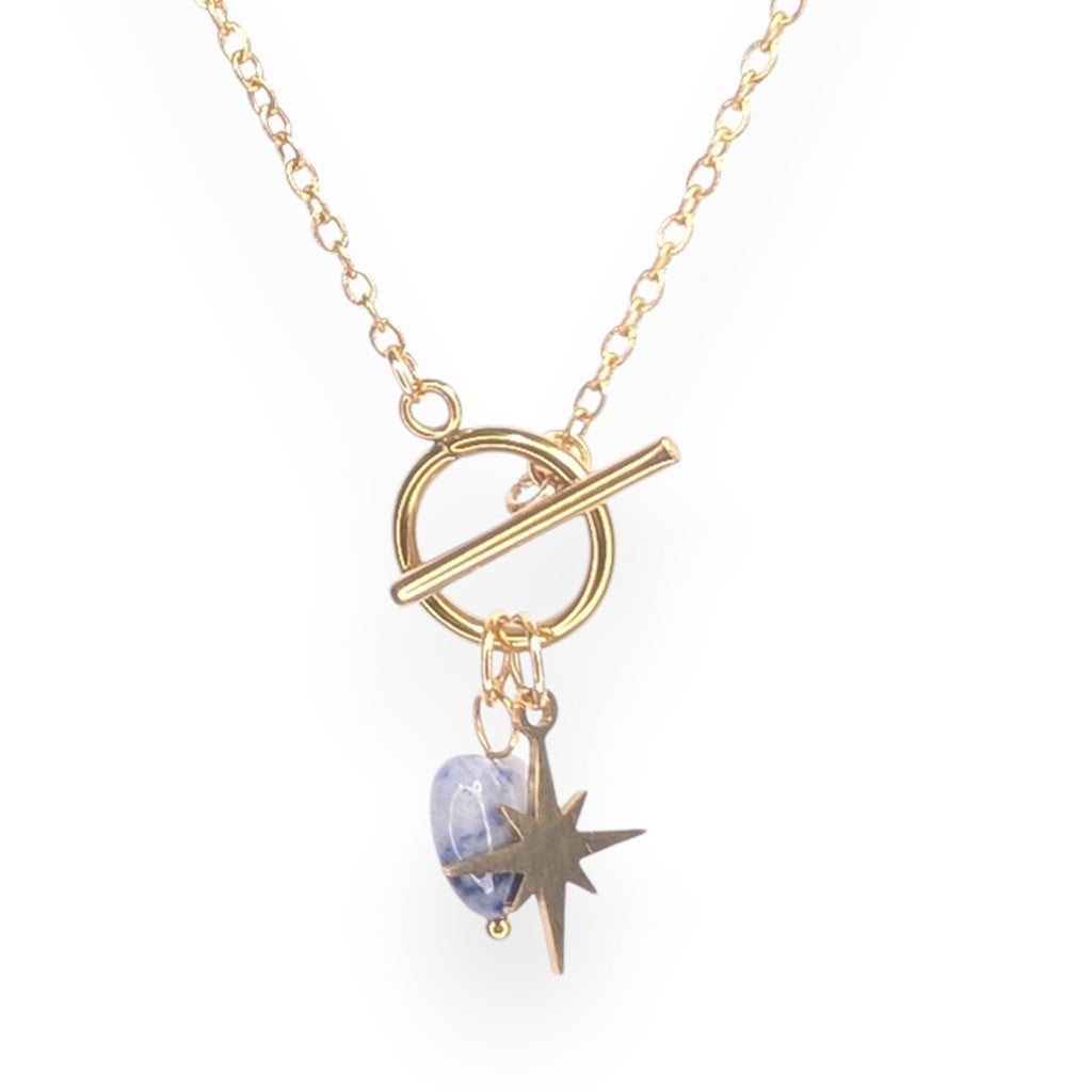 This beautiful Belle T-bar necklace features a delicate star charm and heart shape gemstone that represents hope, guidance, and the belief that anything is possible. Whether you're heading to brunch, hitting the beach, or dancing under festival lights, it’s designed to be worn nonstop.