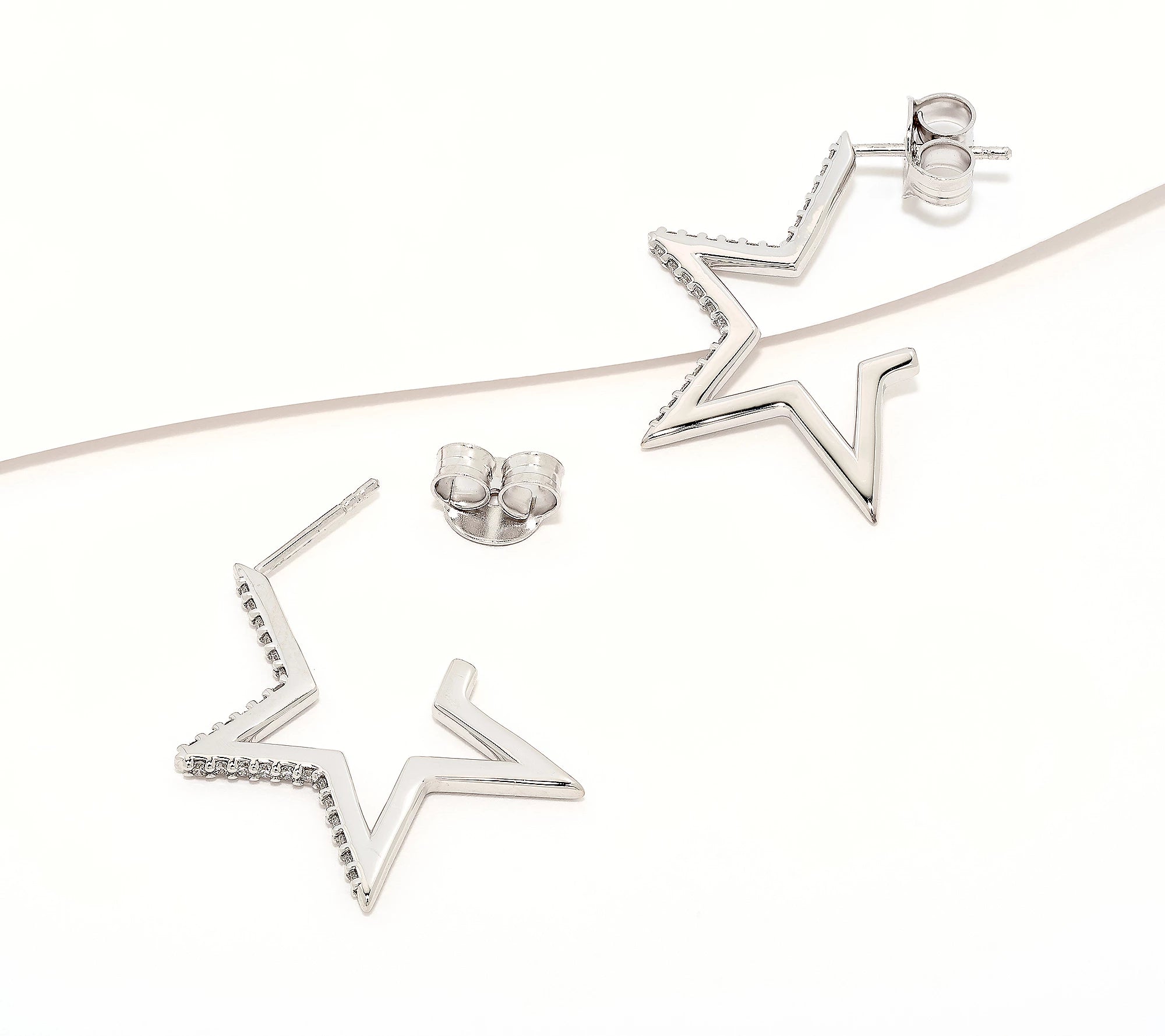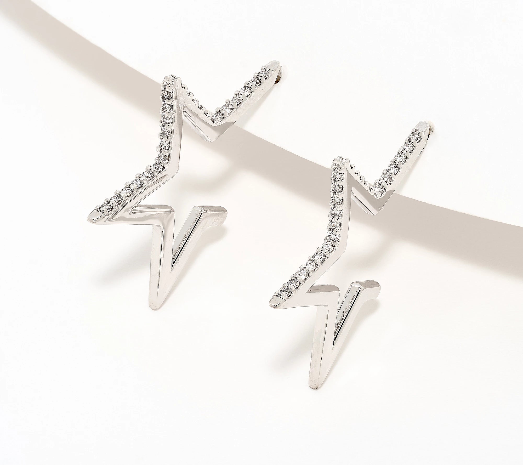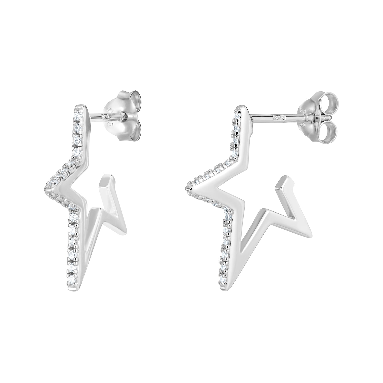 Make a stellar statement with these charming star hoops. Crafted from sterling silver and adorned with sparkling cubic zirconia, they're the perfect accessory for anyone who loves a bit of cosmic flair. Whether you're channelling celestial vibes or just want something that shines, these hoops deliver personality and polish in one delightful package. Lightweight wear that feels as good as it looks.